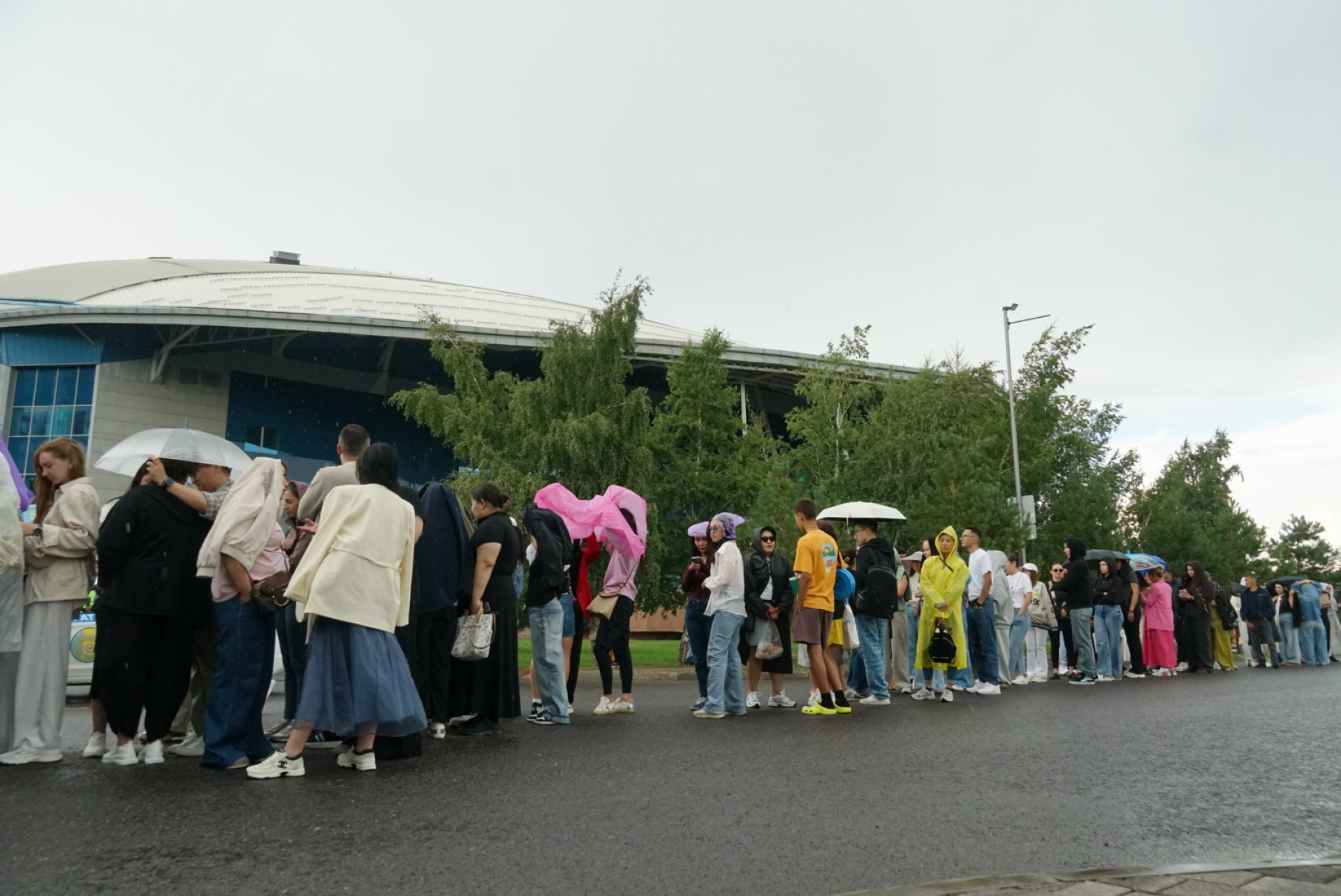 Гостей начнут пускать на концерт за несколько часов до начала шоу, но многие пришли задолго до этого. И именно в этот момент столичных фанатов настигла капризная астанинская погода.